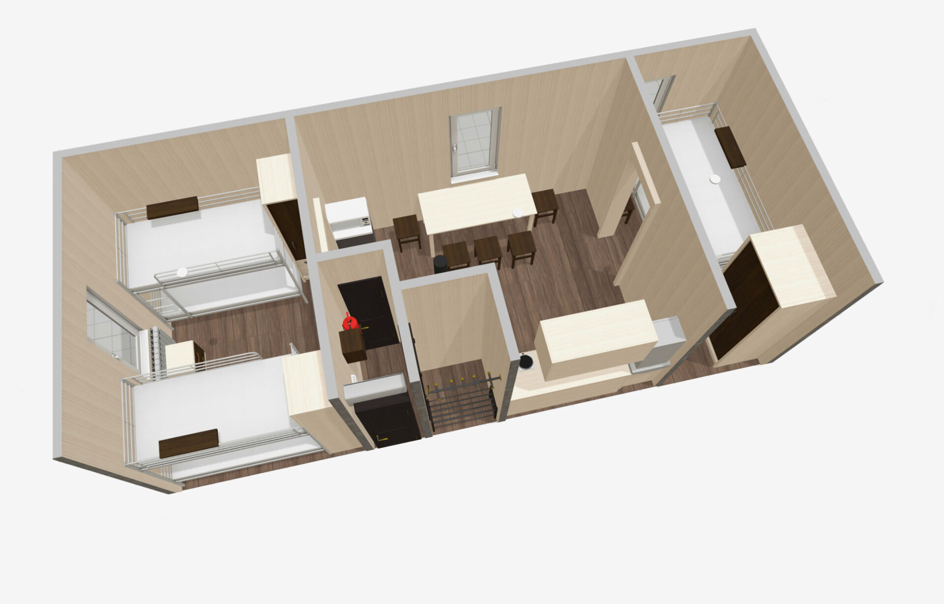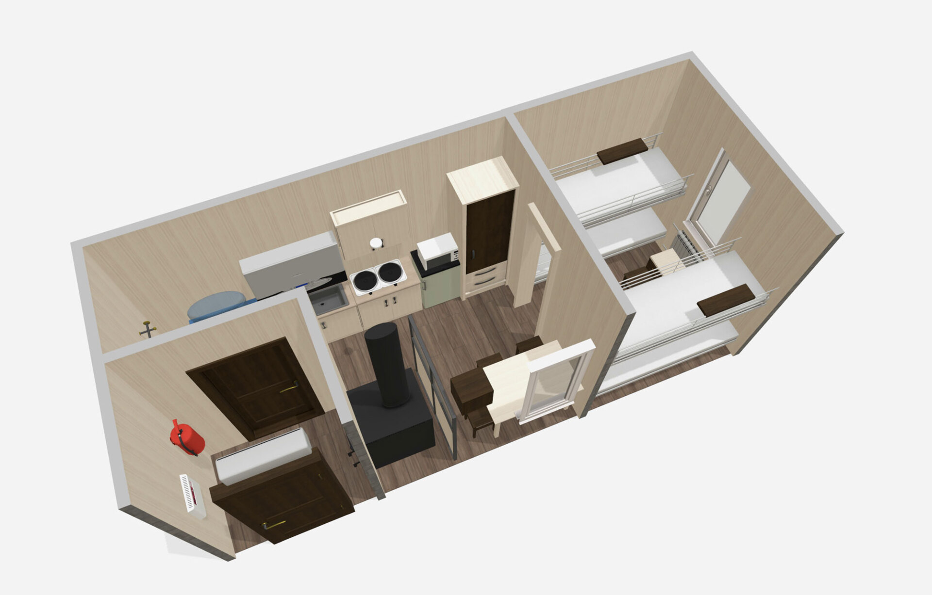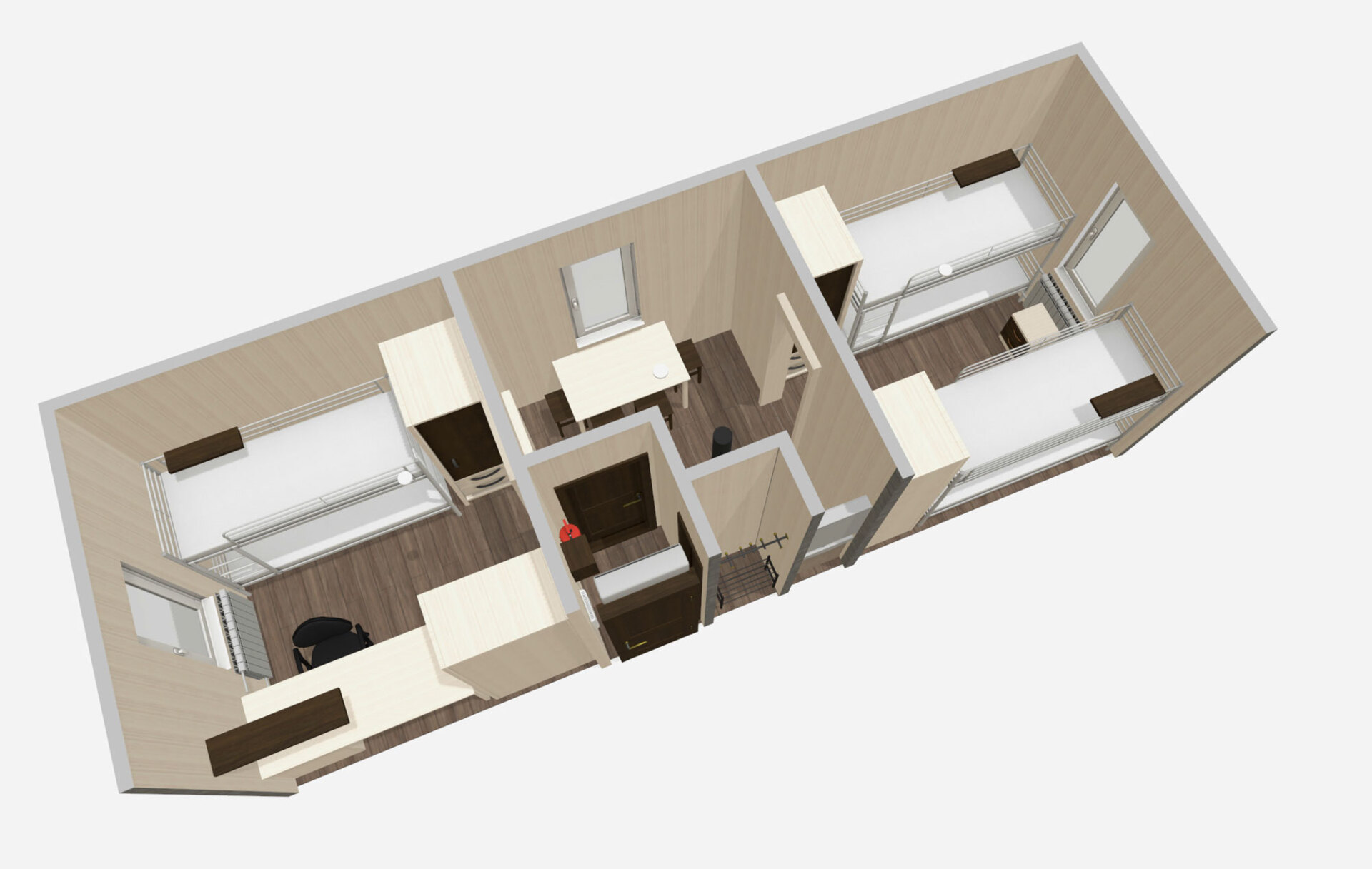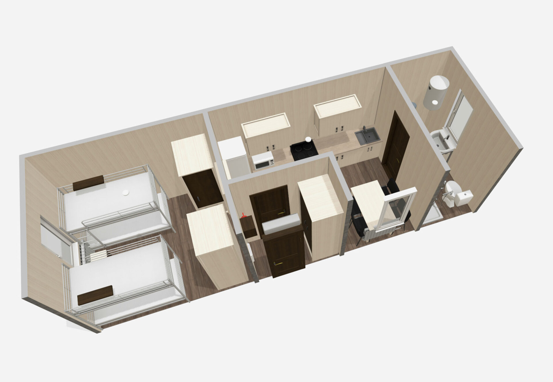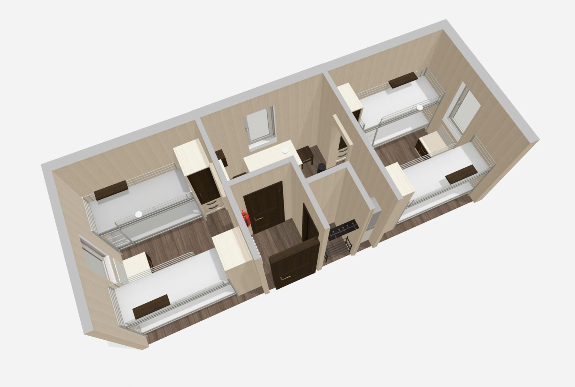 Бытовка жилая в одном модуле длиной 6 м2 на 4-х человек
